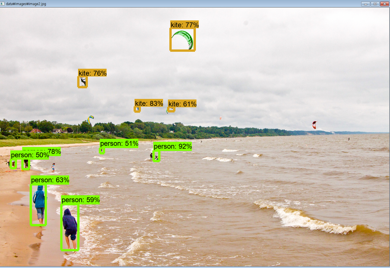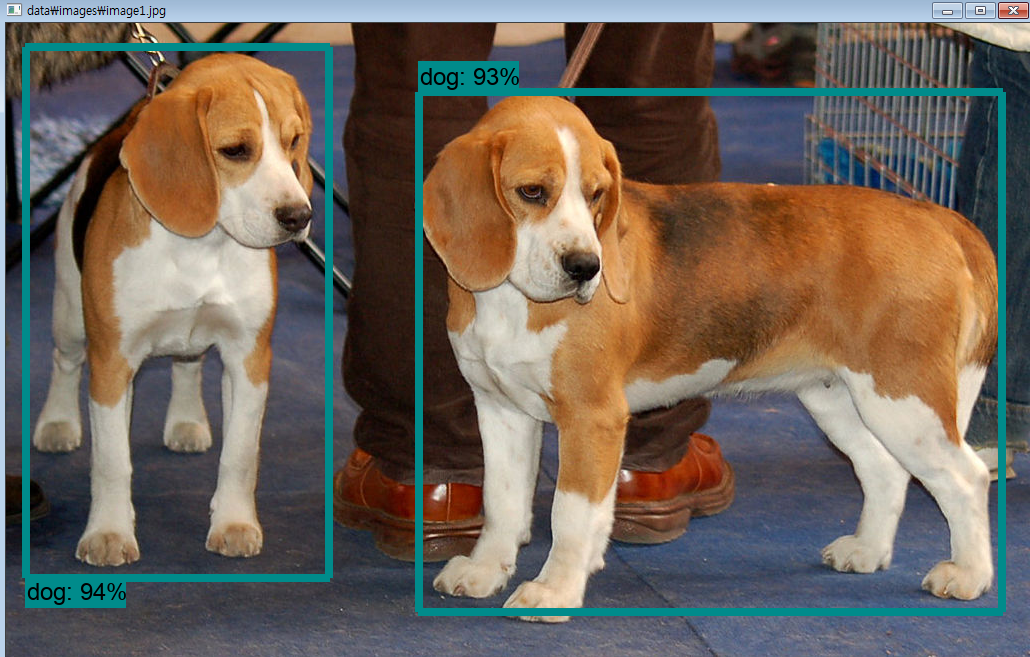 # 모델과 이미지 데이터를 입력받아 물체를 인식하고 인식한 물체에 네모 박스와 이름을 적어 출력합니다.