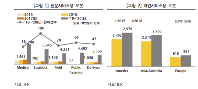 산업용 로봇과 서비스용 로봇의 발전은 빠르게 진행되고있고 앞으로의 성장 또한 큰 폭으로 진행될 것으로 예상된다.