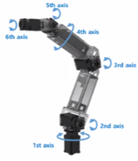 6개의 변수로 로봇의 말단 장치의 위치, 자세가 결정 == 6자유도를 갖는다.