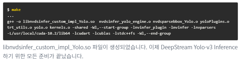 문제는 첫번째로 폴더에 권한 부여를 안해서 sudo make를 쓰더라도 libnvdsinfer_custom_impl_Yolo.so 파일이 생성되지 않았음. 아래 코드 사용하여 허가 후 재실행