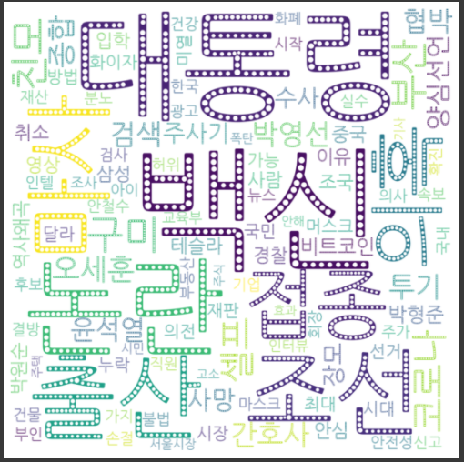 무언가 해놓은게 없다는 판단에 배운거라도 써먹을 수 있도록 기사제목 크롤링 후 워드클라우드로 일자 별 키워드를 한눈에 볼 수 있는 코드를 짜봤다.
