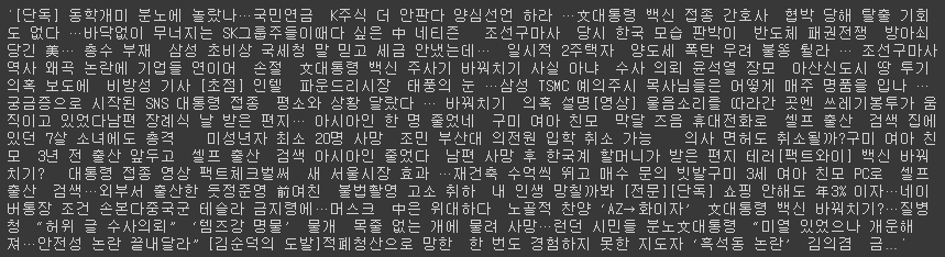 #일자는 변경해 주면 되며, 코드 상 3월24일의 네이버 뉴스 랭킹의 기사제목을 뽑아온다.
