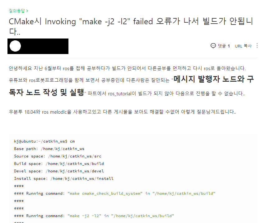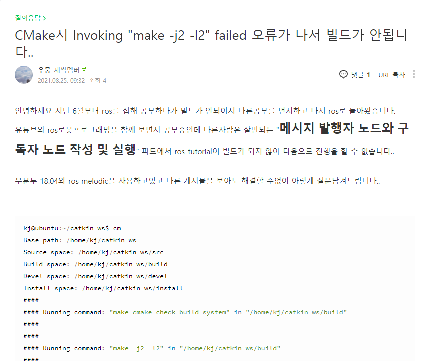 이전에는 실행되던 catkin_make가 되지 않기에 정보를 다시 찾았다.