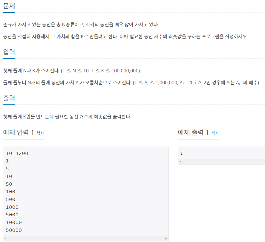 https://www.acmicpc.net/problem/11047 그리디 알고리즘 문제이다. 그리디 알고리즘 = 탐욕 알고리...