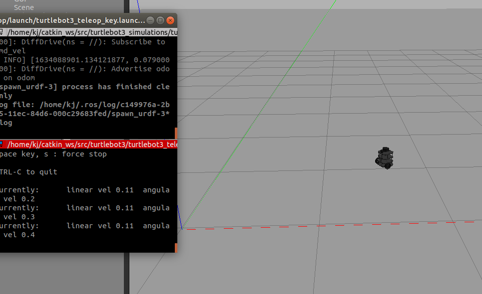 마찬가지로 roslaunch turtlebot3_teleop turtlebot3_teleop_key.launch로 조작한다.