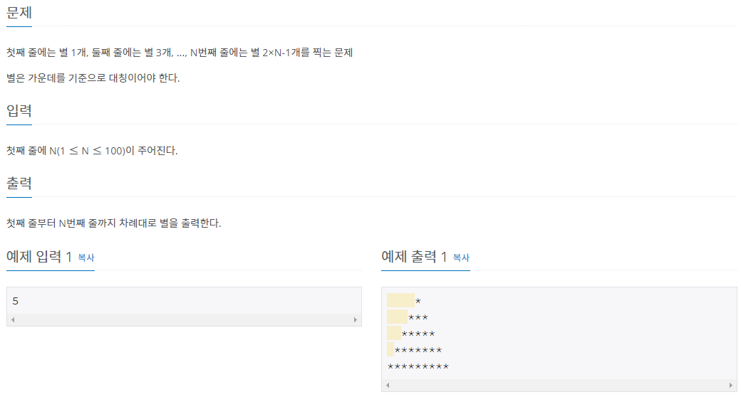 삼각형의 모양으로 아래처럼 별을 먼저 고려하고 추가적으로 오른쪽의 삼각형을 고려하여 출력했다.