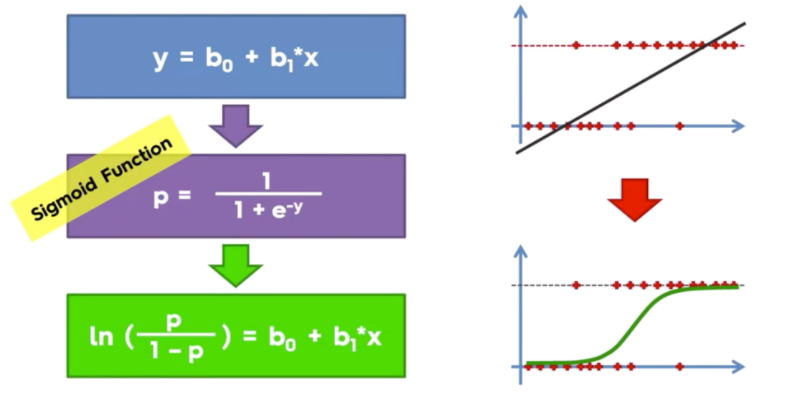 linear Regression 의 식을 Sigmoid에 대입하여 일차방정식으로 만들면 다음과 같아진다.