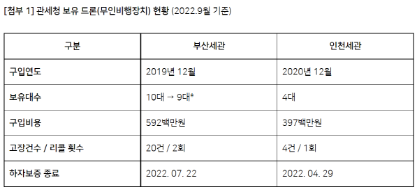 [관세청 도입 '항만 감시 드론', 제대로 기능 못해]