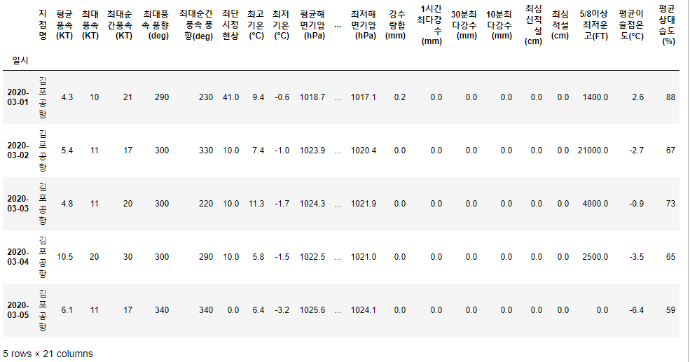 공공데이터 포털에서 공항의 일별 기상자료를 다운받았다.