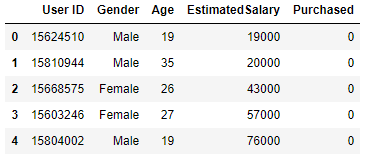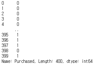 y의 값으로 구매 여부인 df['Purchased']를 설정