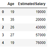 X로 Age와 EstimatedSalary 컬럼을 설정