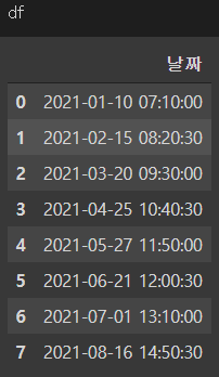 df = pd.DataFrame({'날짜': ['2021-01-10 07:10:00',