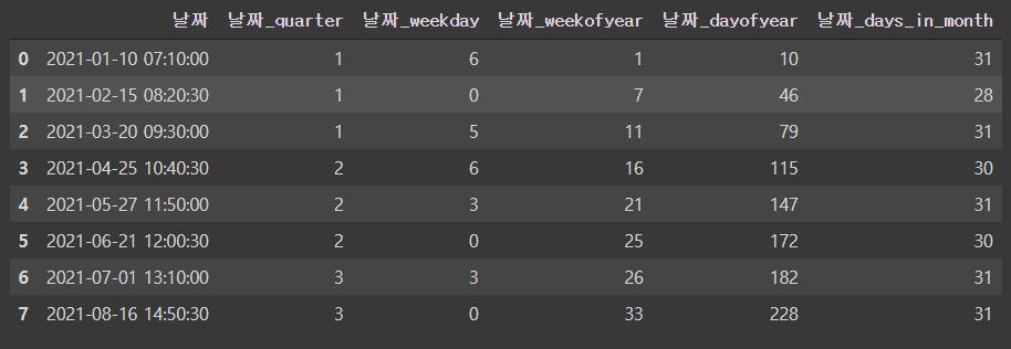 df['날짜_dayofyear'] = df['날짜'].dt.dayofyear # 연 기준 몇일째(숫자)