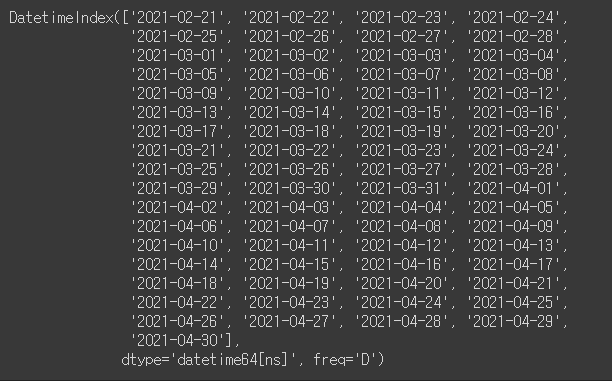 - pd.date_range 함수를 쓰면 모든 날짜/시간을 일일히 입력할 필요없이 시작일과 종료일 또는 시작일과 기간을 입력하면 범위 내의 인덱스를 생성해 준다.