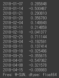 resample 연산을 쓰면 시간 간격을 재조정하는 리샘플링(resampling)이 가능하다. 이 때 시간 구간이 작아지면 데이터 양이 증가한다고 해서 업-샘플링(up-sampling)이라 하고 시간 구간이 커지면 데이터 양이 감소한다고 해서 다운-샘플링(down-sampling)이라 부른다.