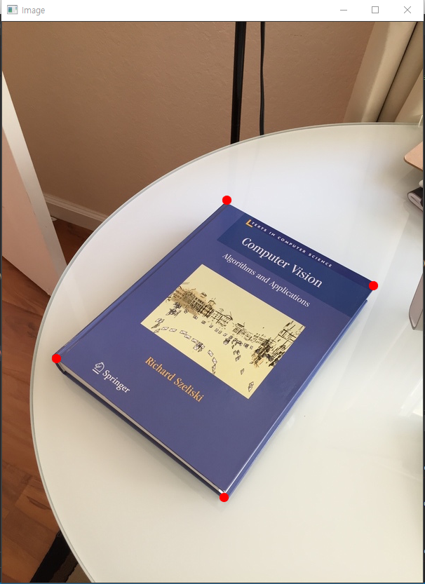 #새로 만들 이미지에서는 위의 원본 이미지 4개 점과 맵핑할 점을 잡아줘야 함.